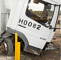 Fence enhancement posts (bollards) being tested to the highest PAS68 subsequently CWA 16221 and ASTM standards without distortion. |