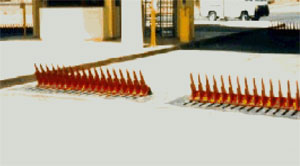 The spikes are raised and lowered by either electromechanical drive or alternatively electro-hydraulic unit.