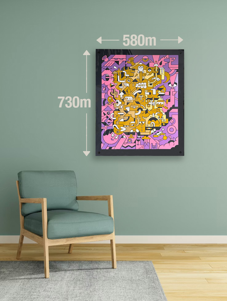 Perspex acrylic pieces come with pre-drilled holes and stand-offs so they sit proud from the wall, while art card works can be supplied unframed or framed to suit your space. The Perspex can come without holes if preferred. The result is clean, vibrant, tactile artwork, finished with precise attention to detail.