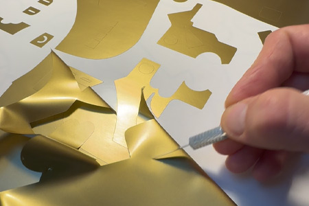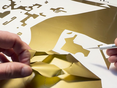 Each layer is cut from high-quality vinyl and weeded by hand — a meticulous process that removes all the unwanted pieces and ensures a perfect finish. The layers are then carefully aligned and applied to the chosen surface. The first layer acts as a guide for the others, but to ensure perfect alignment the subsequent sections are broken down in to smaller areas and applied individually.