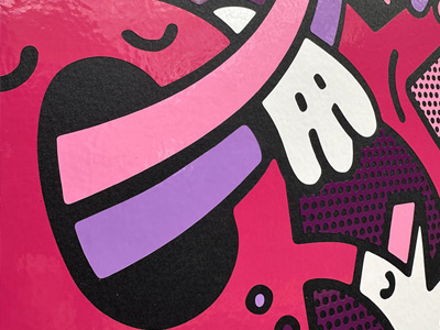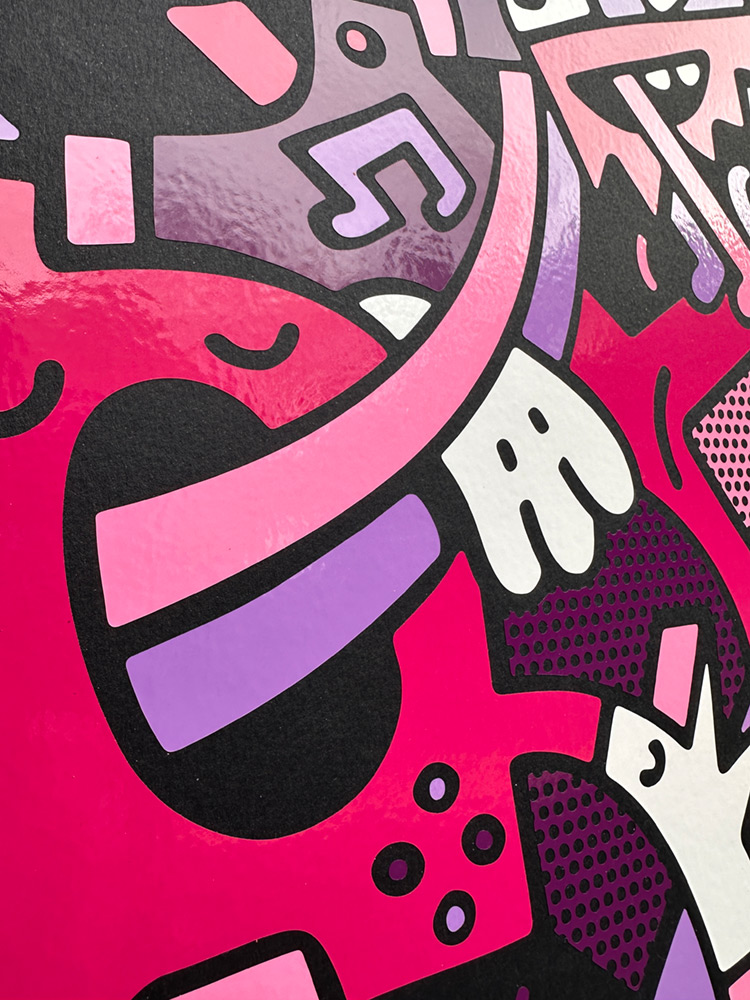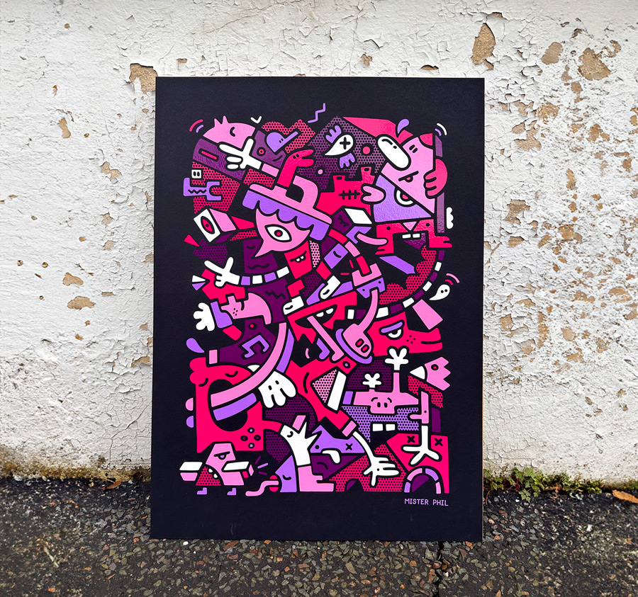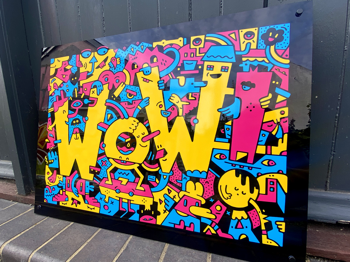 And so I bought my own industrial vinyl cutter and started translating my artwork into multi-colour pieces on Perspex acrylic sheets. The results were better than I could have hoped for - high quality, bright, eye-catching, tactile pieces that really change the space they're in whilst still capturing the Mister Phil chaos and energy.